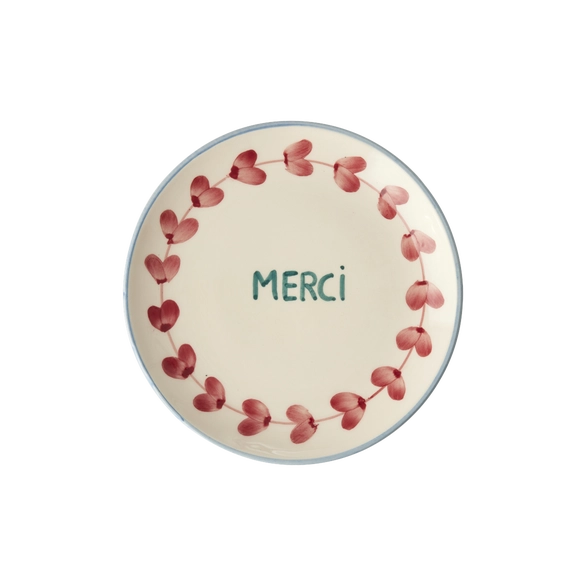 Ceramic Cake Plate with Hand Painted Merci -